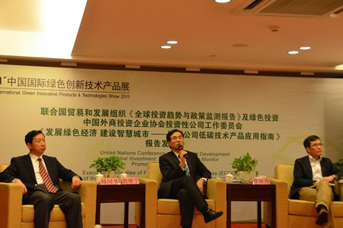 2011年11月8日,由我会承办的联合国贸易和发展组织“《全球投资趋势与政策监测报告》及绿色投资”、中国外商投资企业协会投资性公司工作委员会《发展绿色经济 建设智慧城市——跨国公司低碳技术产品应用指南》报告发布会在广州“2011中国国际绿色创新技术产品展”期间召开。