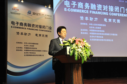 2012年5月31日,由我会主办,我会投融资工作委员会、北京电子商务协会、北京国商国际资信评估有限公司共同承办的“电子商务融资对接闭门会”在北京国家会议中心成功召开。本次会议是首届京交会“2012中国电子商务大会暨博览会”的重要内容之一,旨在搭建投资机构与电子商务企业有效对接的平台。商务部电子商务和信息化司以及北京市商务委员会对会议给予了大力支持和指导。近300位来自政府部门、投资机构、电商企业和行业协会的代表参加了会议。