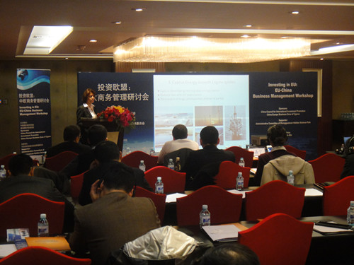 塞浦路斯中欧商贸区是在塞浦路斯政府和欧盟支持下,由塞企业联盟发起成立的民间机构。我会与其签署了合作意向书,旨在搭建中欧投资贸易平台,帮助中国企业落户塞浦路斯,并通过此平台实现对周边国别地区的转口贸易和再投资。本次研讨会为落实双方后续合作,向各地方投资促进机构以及能源、商贸等重点领域的企业介绍在当前欧债危机背景下如何通过塞浦路斯为平台和窗口进入欧盟、中东市场等议题。