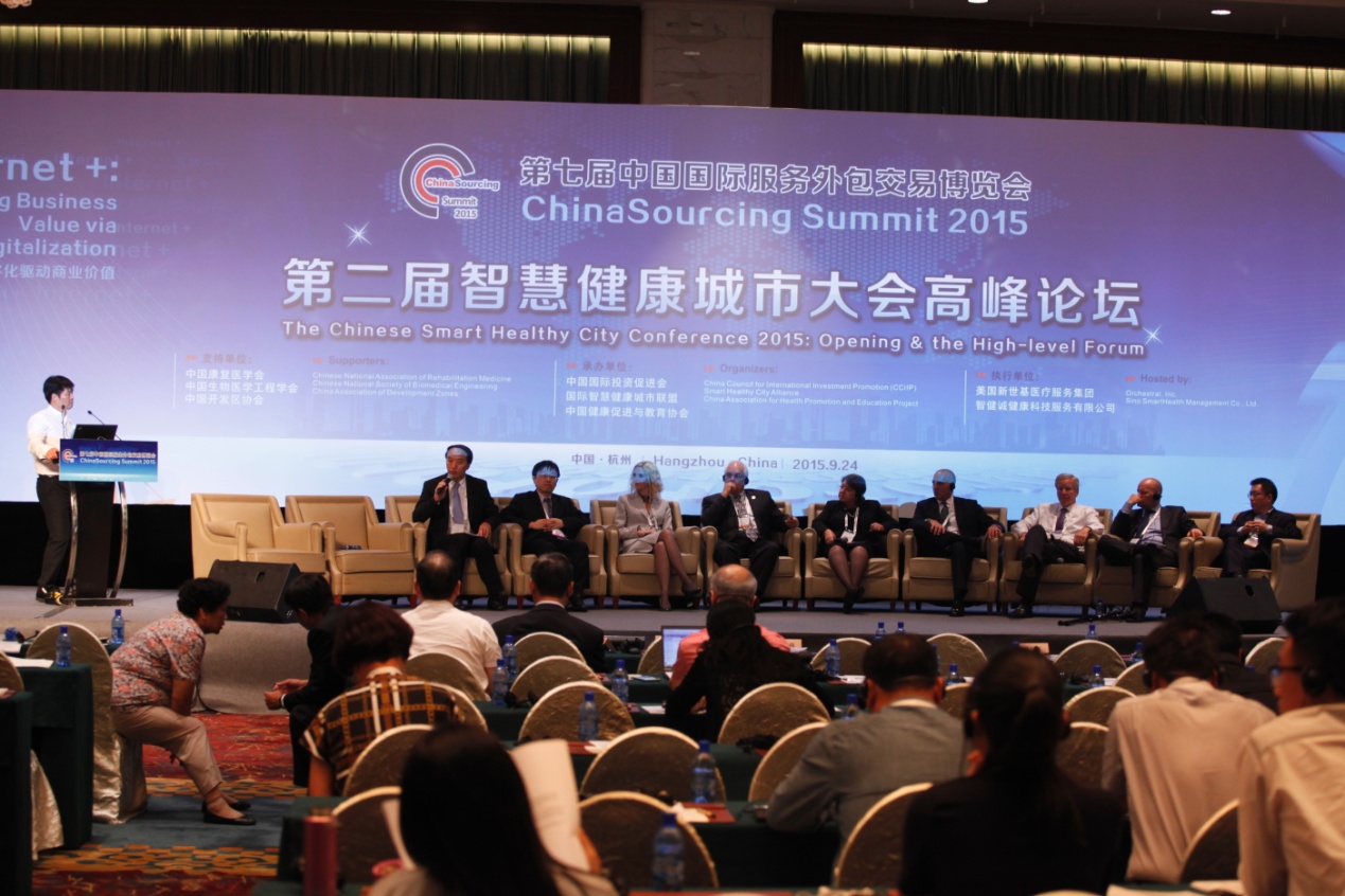 金秋九月,是收获的季节。9月24至25日,由中华人民共和国商务部、杭州市人民政府共同主办,中国国际投资促进会、杭州市商务委员会联合承办的第七届中国国际服务外包交易博览会在杭州隆重召开。关注热门行业、引导企业走向细分市场,是服博会坚持的方向,也是一大亮点与特色。期间,中国国际投资促进会联合国际智慧健康城市联盟(SHCA)、中国健康促进与教育协会共同承办了第二届智慧健康城市大会。大会由美国新世基(Orchestrall)医疗服务集团、智健诚健康科技服务(北京)有限公司、中国国际投资促进会投融资工作委员会(CIFC)具体执行,得到了中国康复医学会、中国生物医学工程学会、中国开发区协会的大力支持。