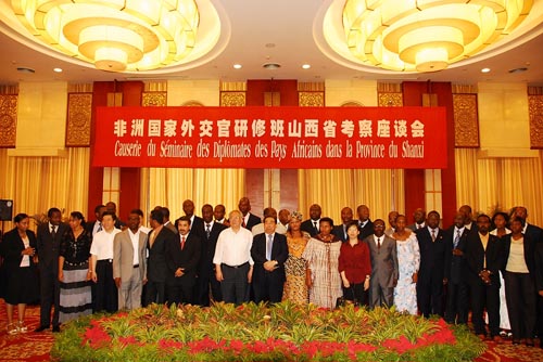 座谈会上,乔亮生局长就山西的经济发展现状,深厚的文化底蕴,丰富的旅游景观资源、能源以及山西作为能源资源大省对中国现代化建设提供的有力支撑做了细致介绍。特别是近年来山西与国内外的交流与合作不断扩大,06年至今山西举办了八场重大招商活动,签约合作项目2260个。仅08年,山西省招商引资资金到位1046.33亿元人民币,超过了当年全省社会固定资产投资总额的1/4,有力促进了山西经济发展,其中,80%的资金投在了非煤产业,也有力地推动了山西转型发展。在与非洲的交流与合作方面,乔局长重点介绍了山西与毛里求斯成功合作兴建天利经济贸易合作区的经典范例。同时还就山西省为了应对金融危机,按照国家保增长、扩内需、调结构、重民生的要求,坚持转型发展、安全发展、和谐发展,进一步加大加快发展步伐,推出了11700亿元的投资大单。其中重点工程项目152个,总投资近6000亿元,项目主要涉及基础设施建设、生态环保、科教文卫等十大领域的情况作了全面介绍。